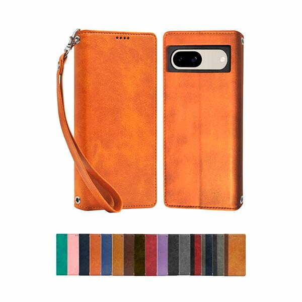 shizukawill Google Pixel8a 手帳型 ケース カバー 本革調 レザーケース GOPI8AORANGE