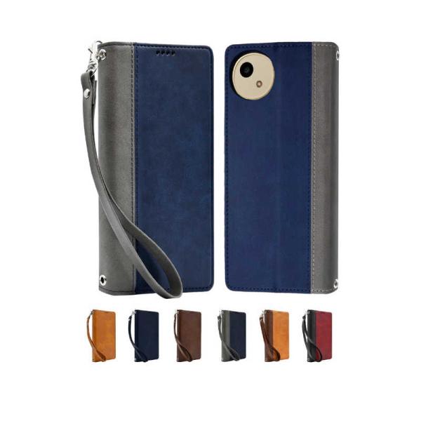shizukawill AQUOS wish4 SH-52E 本革調 手帳型 ケース ネイビー×グレー SHAQW4BING
