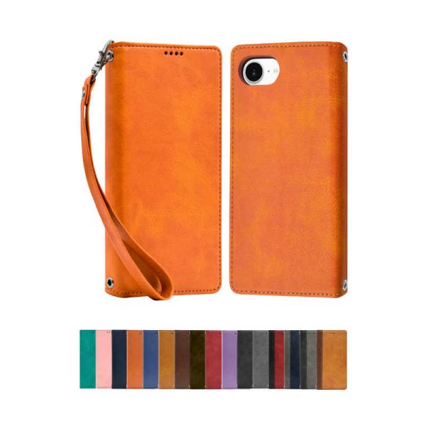 shizukawill iPhone16e 手帳型 ケース カバー 本革調 レザーケース (シズカウィル) オレンジ APIPSE4ORANGE