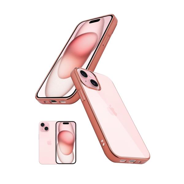 シズカウィル(shizukawill) iPhone15 ケース カバー サイドメッキ加工 ストラップ付 TPU 1個入り ローズ×クリア