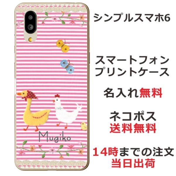 シンプルスマホ6 ケース A201SH カバー らふら 名入れ あひる にわとり 行進