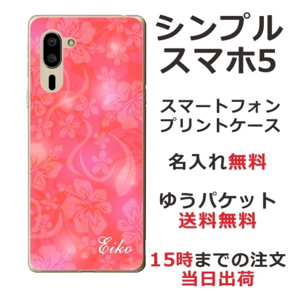 シンプルスマホ5 ケース A001sh カバー らふら 名入れ ハイビスカスピンク