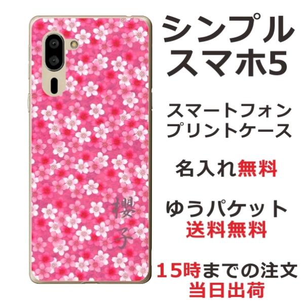 シンプルスマホ5 ケース A001sh カバー らふら 名入れ 桜ピンク