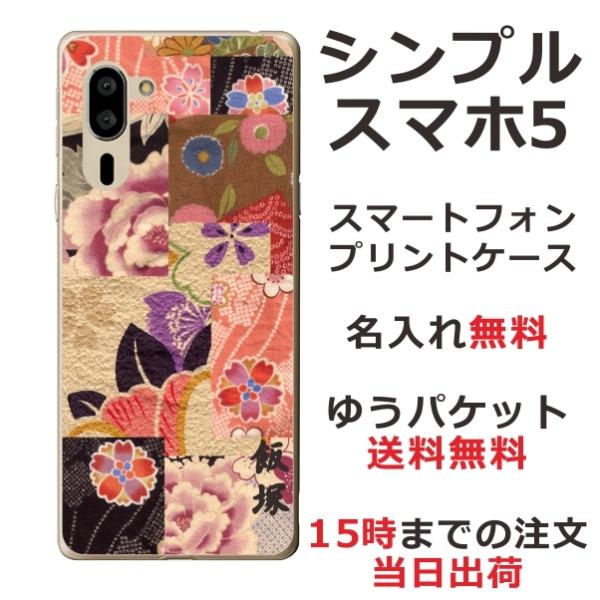 シンプルスマホ5 ケース A001sh カバー らふら 名入れ 和花パッチワーク