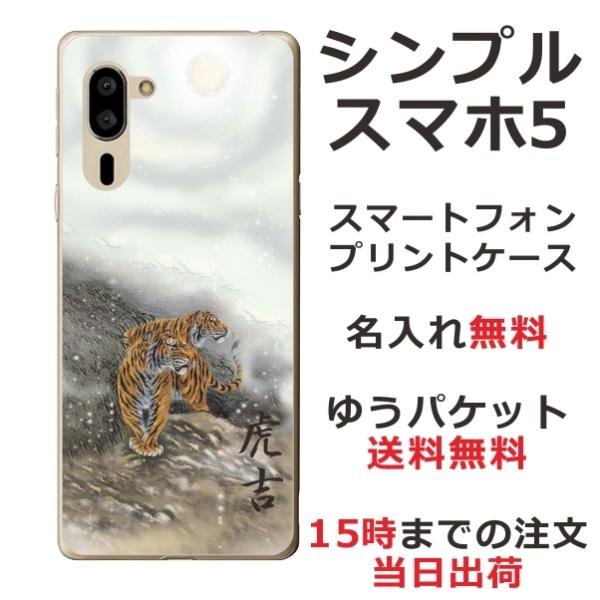 シンプルスマホ5 ケース A001sh カバー らふら 名入れ 白夜双虎
