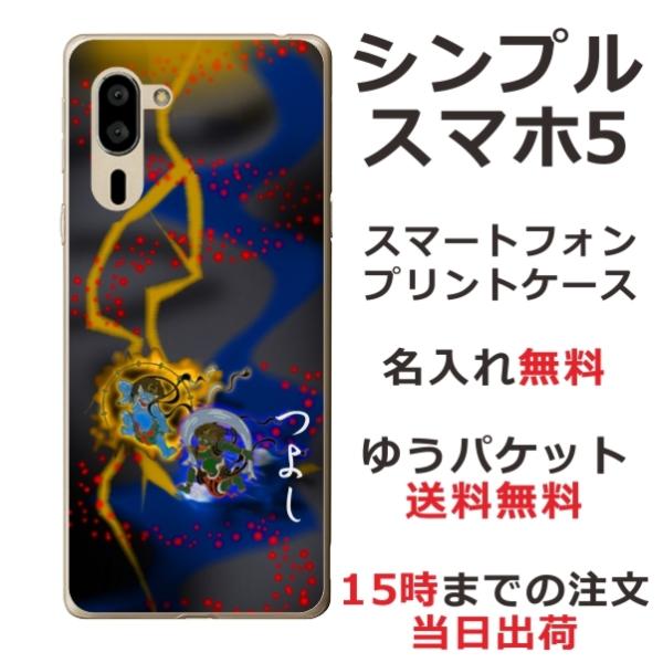 シンプルスマホ5 ケース A001sh カバー らふら 名入れ 風神雷神