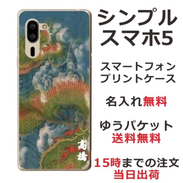 シンプルスマホ5 ケース A001sh カバー らふら 名入れ 昇龍碧