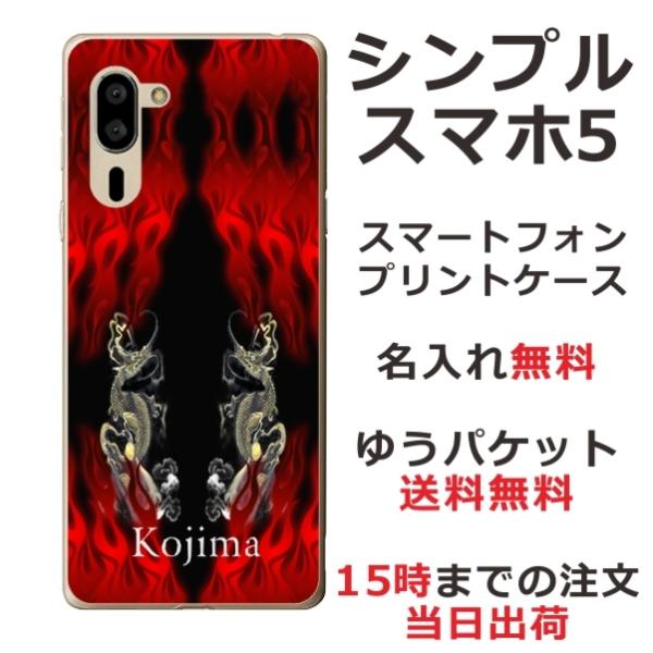 シンプルスマホ5 ケース A001sh カバー らふら 名入れ 炎闇双龍