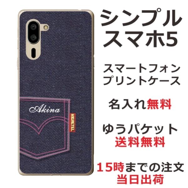 シンプルスマホ5 ケース A001sh カバー らふら 名入れ デニム