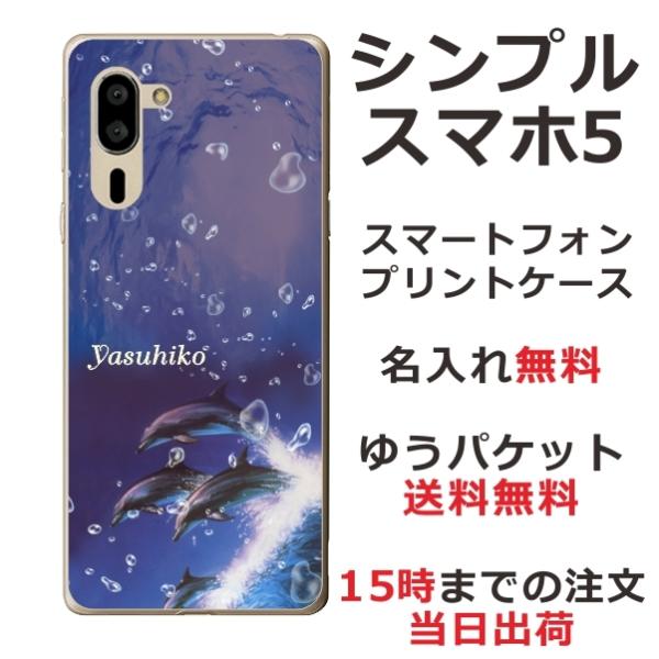 シンプルスマホ5 ケース A001sh カバー らふら 名入れ ドルフィンジャンプ