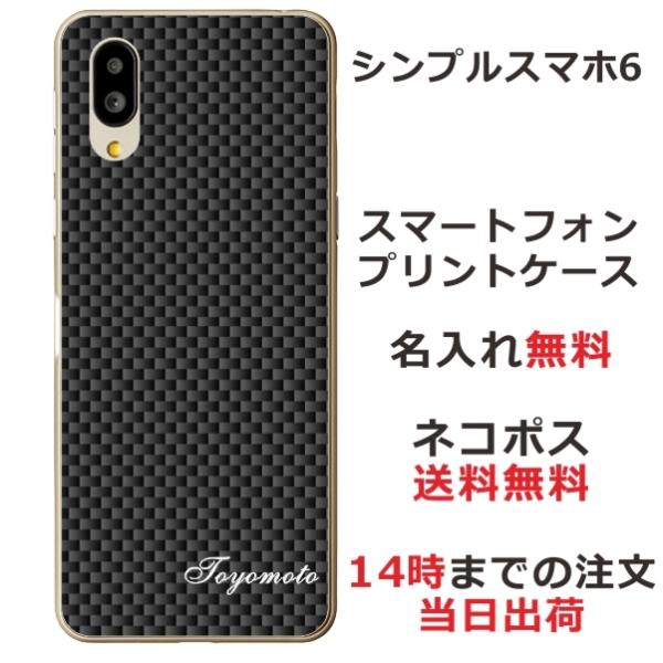 シンプルスマホ6 ケース A201SH カバー らふら 名入れ カーボン ブラック