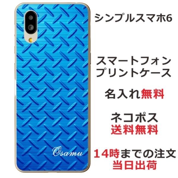 シンプルスマホ6 ケース A201SH カバー らふら 名入れ メタル ブルー