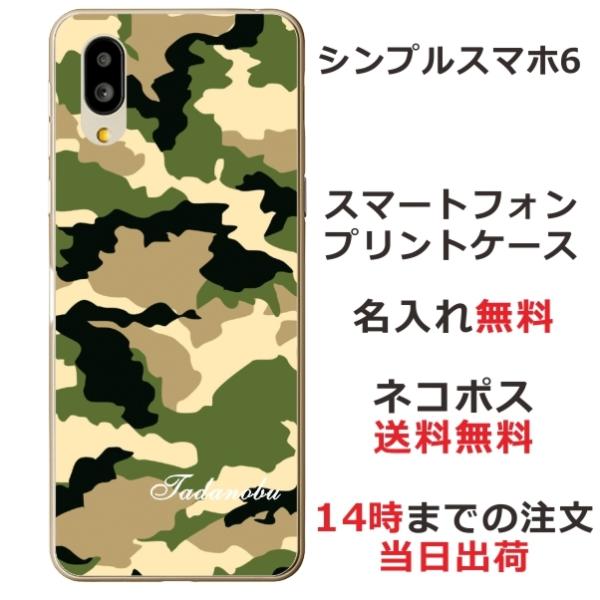シンプルスマホ6 ケース A201SH カバー らふら 名入れ 迷彩 グリーン