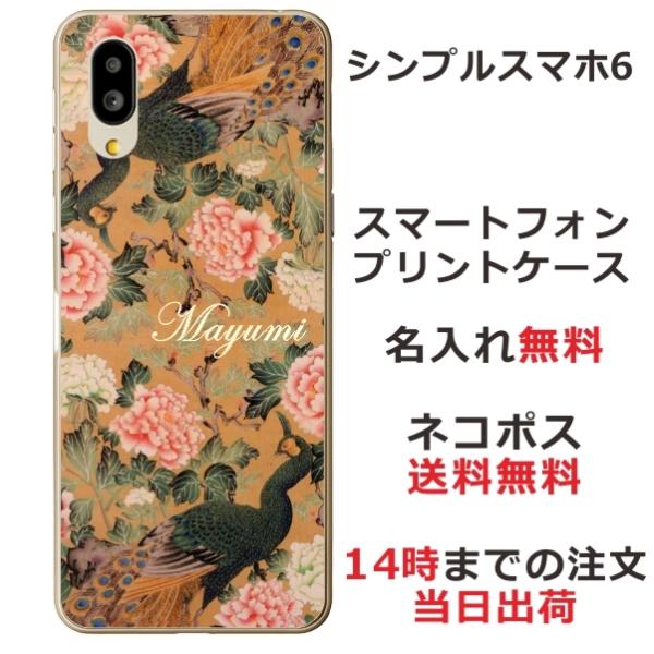 シンプルスマホ6 ケース A201SH カバー らふら 名入れ 和柄 孔雀牡丹