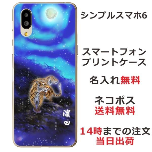 シンプルスマホ6 ケース A201SH カバー らふら 名入れ 和柄 蒼月虎