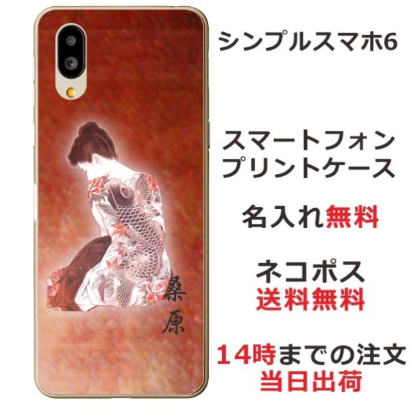 シンプルスマホ6 ケース A201SH カバー らふら 名入れ 和柄 艶女昇鯉