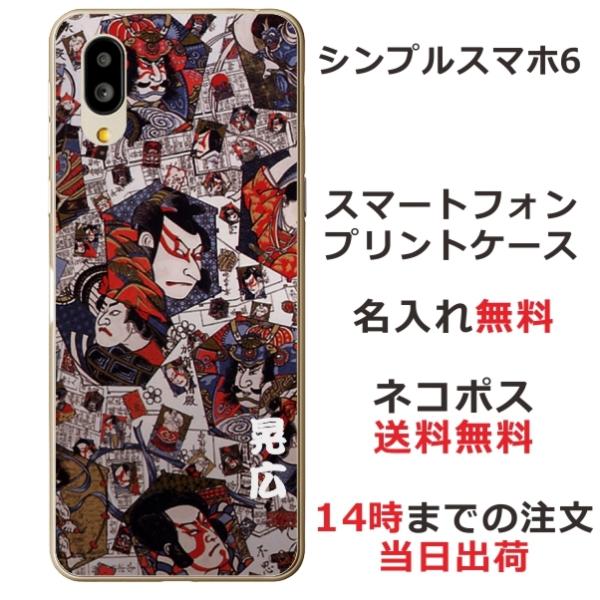 シンプルスマホ6 ケース A201SH カバー らふら 名入れ 和柄 歌舞伎