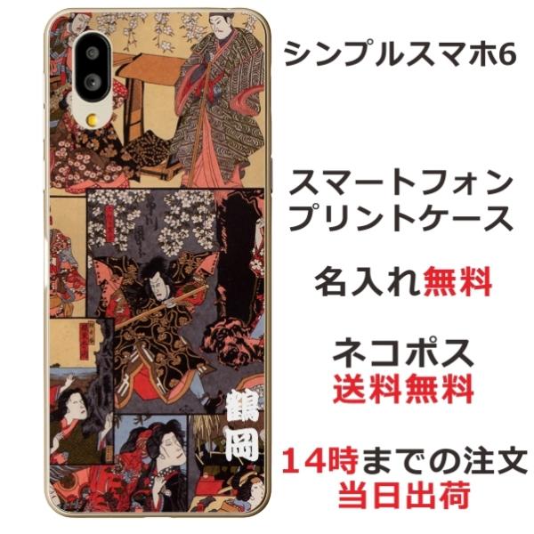 シンプルスマホ6 ケース A201SH カバー らふら 名入れ 和柄 歌舞伎