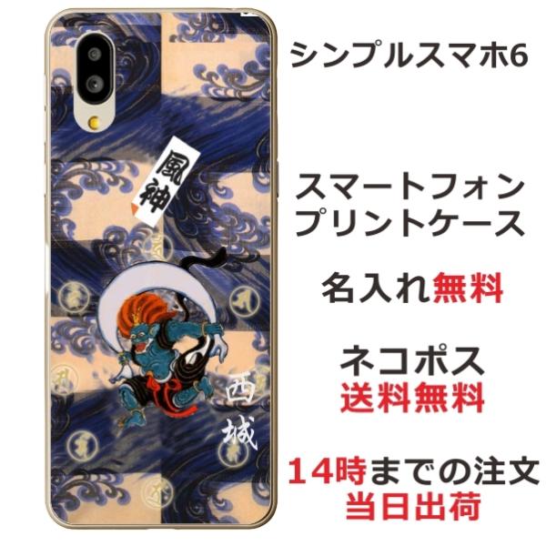 シンプルスマホ6 ケース A201SH カバー らふら 名入れ 和柄 風神