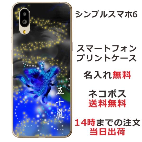 シンプルスマホ6 ケース A201SH カバー らふら 名入れ 和柄 鳳凰青