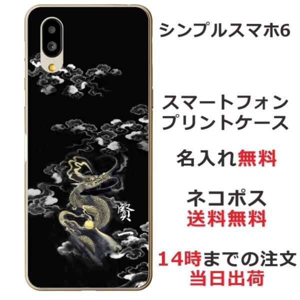 シンプルスマホ6 ケース A201SH カバー らふら 名入れ 和柄 漆黒雲海龍