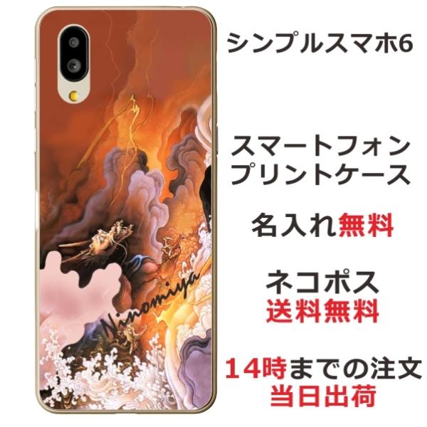 シンプルスマホ6 ケース A201SH カバー らふら 名入れ 和柄 黄金雲海龍