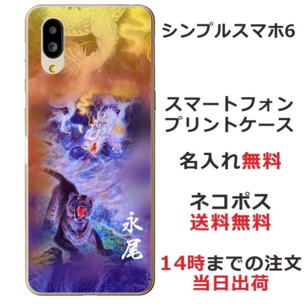 シンプルスマホ6 ケース A201SH カバー らふら 名入れ 和柄 龍虎蒼橙