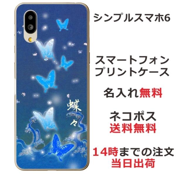 シンプルスマホ6 ケース A201SH カバー らふら 名入れ 和柄 蒼波光蝶