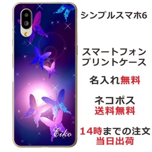 シンプルスマホ6 ケース A201SH カバー らふら 名入れ 和柄 紫蝶々