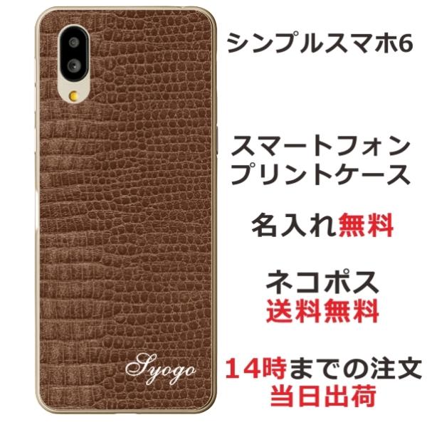 シンプルスマホ6 ケース A201SH カバー らふら 名入れ クロコダイル ブラウン