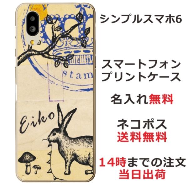 シンプルスマホ6 ケース A201SH カバー らふら 名入れ アンティークうさぎ