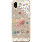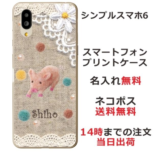 シンプルスマホ6 ケース A201SH カバー らふら 名入れ コットンレース風 ブタ