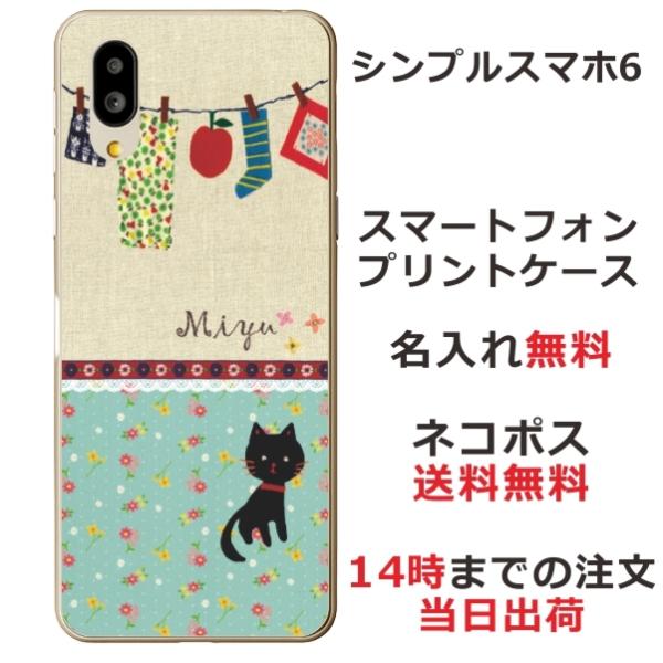 シンプルスマホ6 ケース A201SH カバー らふら 名入れ 黒猫 洗濯物