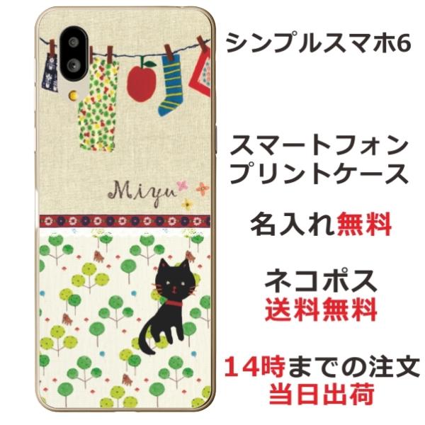 シンプルスマホ6 ケース A201SH カバー らふら 名入れ 黒猫 洗濯物