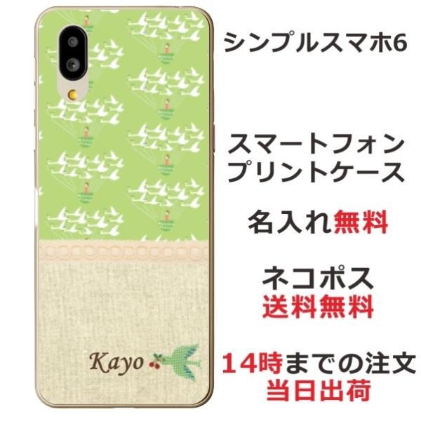 シンプルスマホ6 ケース A201SH カバー らふら 名入れ 北欧デザイン ホワイト バード