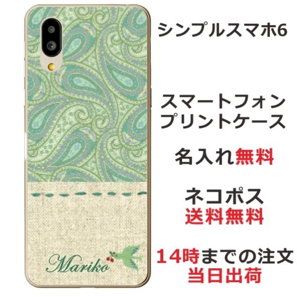 シンプルスマホ6 ケース A201SH カバー らふら 名入れ 北欧デザイン ペイズリー