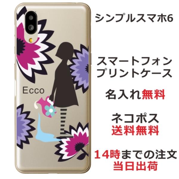 シンプルスマホ6 ケース A201SH カバー らふら 名入れ モダン花 少女