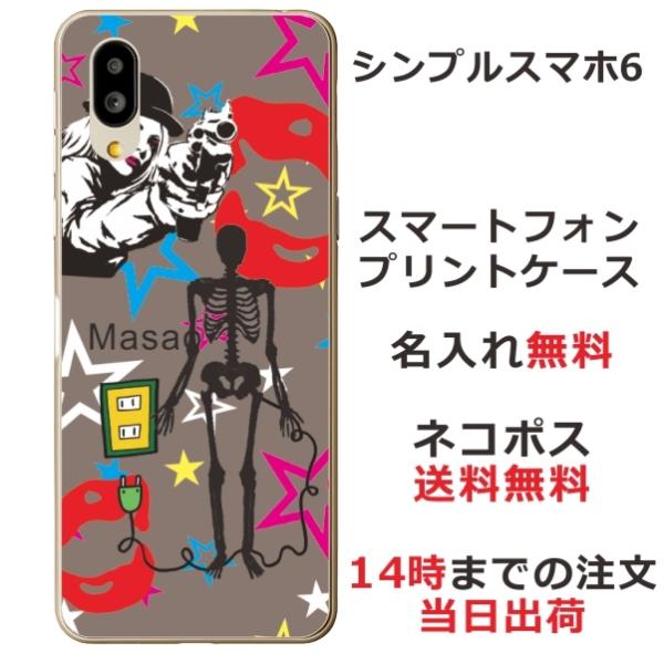 シンプルスマホ6 ケース A201SH カバー らふら 名入れ 狙われたドクロ
