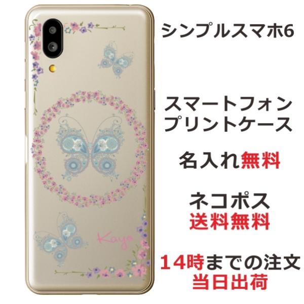 シンプルスマホ6 ケース A201SH カバー らふら 名入れ レース バタフライ