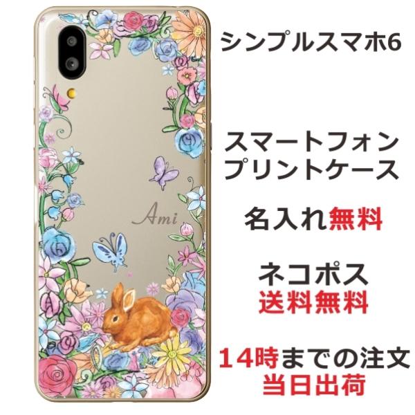 シンプルスマホ6 ケース A201SH カバー らふら 名入れ お花畑 ウサギ
