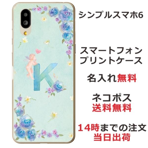 シンプルスマホ6 ケース A201SH カバー らふら 名入れ イニシャル エンジェル