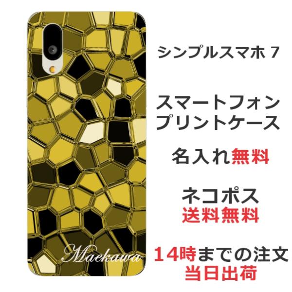 シンプルスマホ7 A404SH らふら 名入れ スマホケース ゴールド モザイク