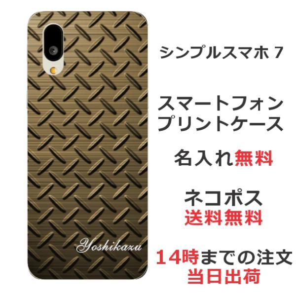 シンプルスマホ7 A404SH らふら 名入れ スマホケース メタル ゴールド