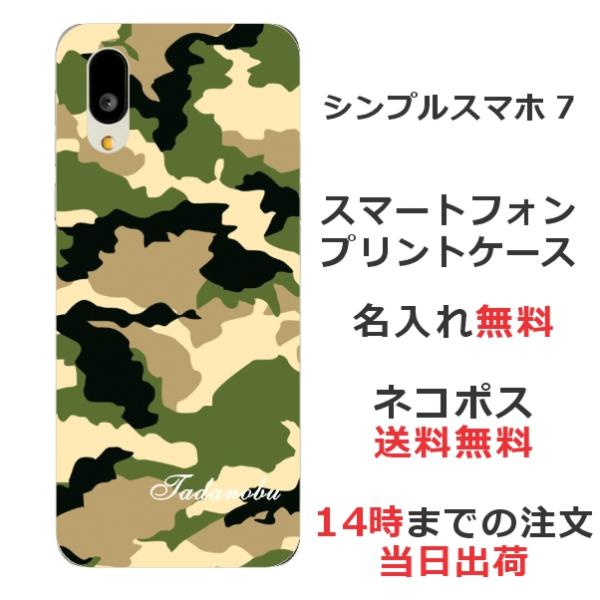 シンプルスマホ7 A404SH らふら 名入れ スマホケース 迷彩 グリーン