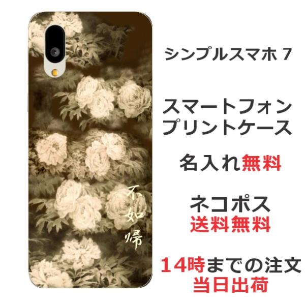 シンプルスマホ7 A404SH らふら 名入れ スマホケース 和柄 セピア牡丹