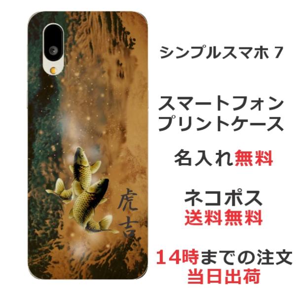 シンプルスマホ7 A404SH らふら 名入れ スマホケース 和柄 黄金双鯉
