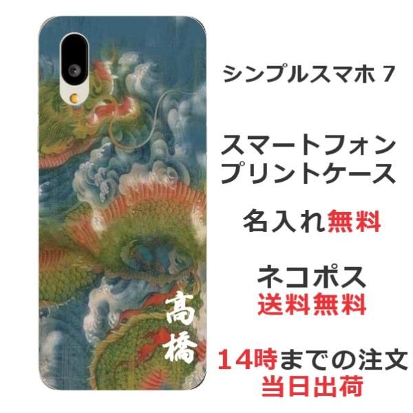 シンプルスマホ7 A404SH らふら 名入れ スマホケース 和柄 昇龍碧