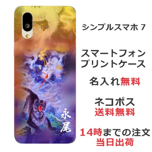 シンプルスマホ7 A404SH らふら 名入れ スマホケース 和柄 龍虎蒼橙