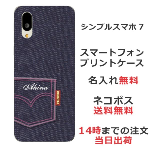 シンプルスマホ7 A404SH らふら 名入れ スマホケース デニムプリントケース
