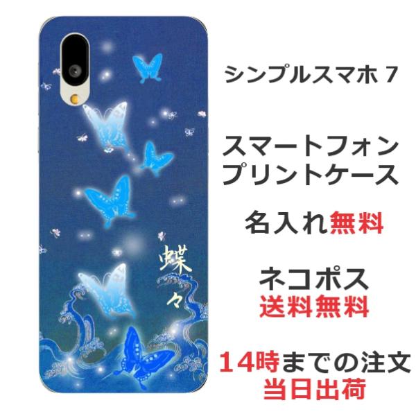 シンプルスマホ7 A404SH らふら 名入れ スマホケース 和柄 蒼波光蝶